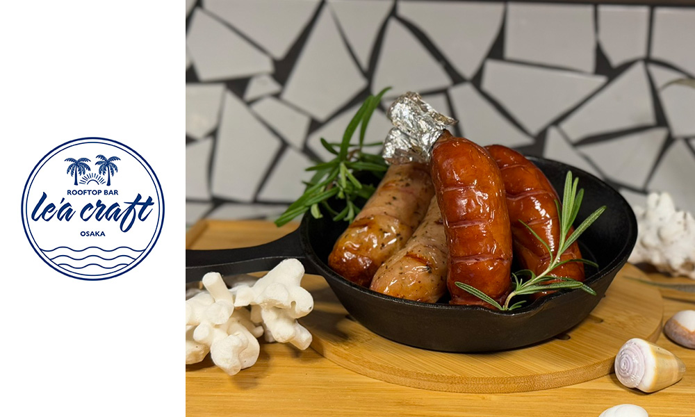 le’a craft(レアクラフト)は、大阪・福島にあるルーフトップバーです。【ソーセージ】【ふりふりポテト】をご用意しました!ポテトは大人気の自家製海老塩などたくさんの種類をご用意しております!是非ご賞味ください!