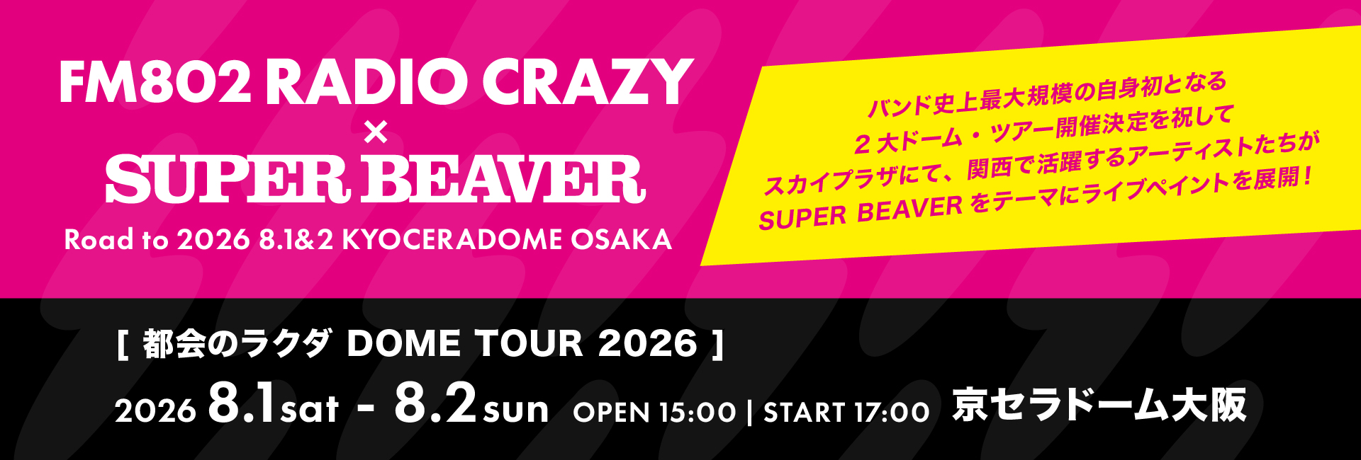 バンド史上最大規模の自身初となる2大ドーム・ツアー開催決定を祝してスカイプラザにて、 関西で活躍するアーティストたちがSUPER BEAVERをテーマにライブペイントを展開!ぜひご覧ください!