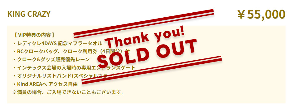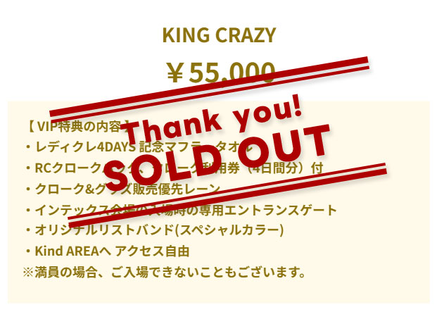 4DAYS TICKETはVIP特典が付いていませんのでご注意ください。Please note that the 4DAYS TICKET does not include VIP benefits.
